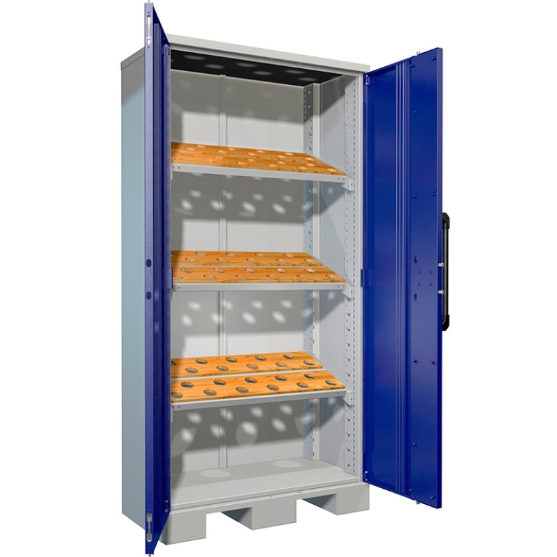 Шкаф AMH TC-003000 устанавливается на промышленных предприятиях или мастерских и предназначен для удобного размещения инструментов и различных приспособлений. Шкаф изготовлен из листового металла толщиной 1,5 мм. Шкаф оборудован распашной двухстворчатой дверью с ключевым замком и трехсторонней ригельной системой запирания. Шкаф оснащен тремя регулируемыми по высоте стальными полками с отверстиями для размещения инструментов. Сверху на полках установлена накладка из фанеры. Цоколь шкафа имеет отверстия для вилочного погрузчика. В интернет-магазине SAFE-STR.RU вы можете приобрести металлическую мебель по самым выгодным ценам. Наши филиалы работают в Москве и Санкт-Петербурге. Доступна услуга быстрой доставки заказов в пределах Московской и Ленинградской областей.