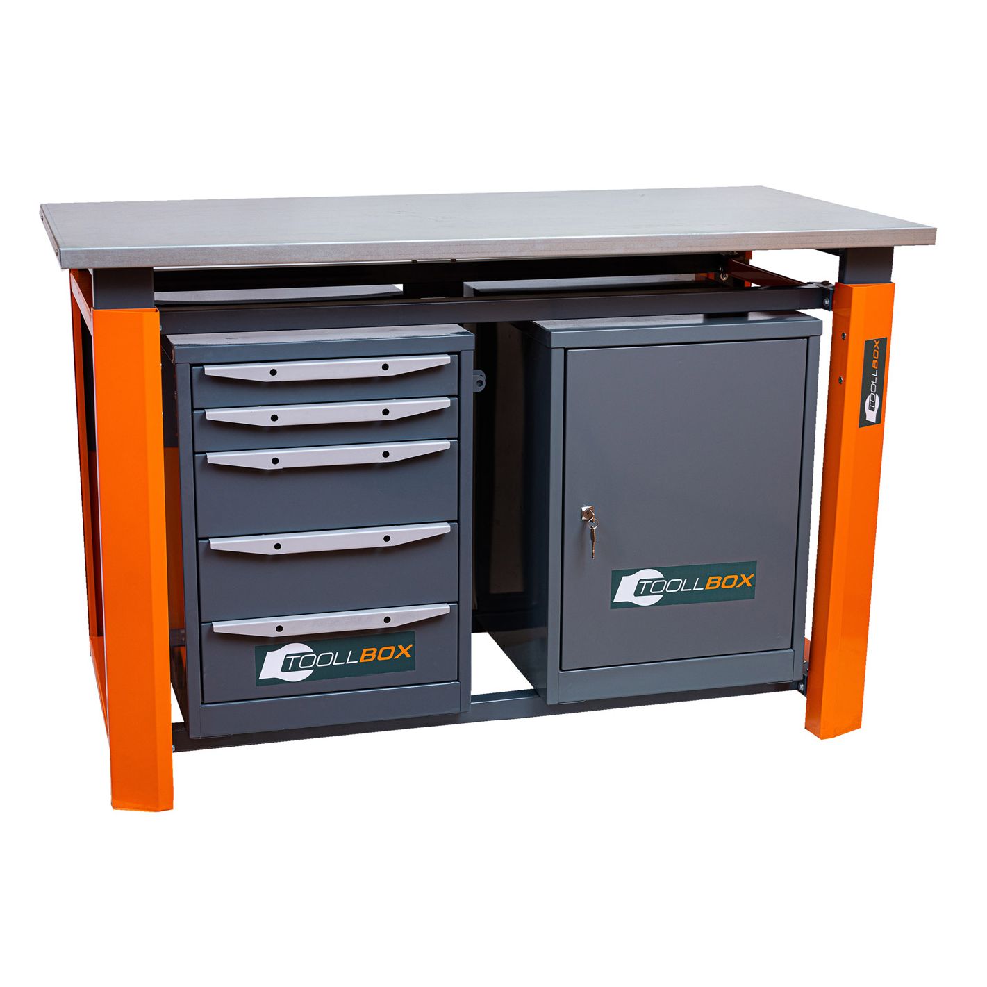 Отдельное преимущество модели — возможность регулировки высоты столешницы под задачи пользователя. По желанию заказчика рабочую высоту можно изменить в диапазоне от 924 до 1044 мм, что особенно удобно при оснащении мастерской под конкретные технологические процессы или под персональные требования к эргономике рабочего места.