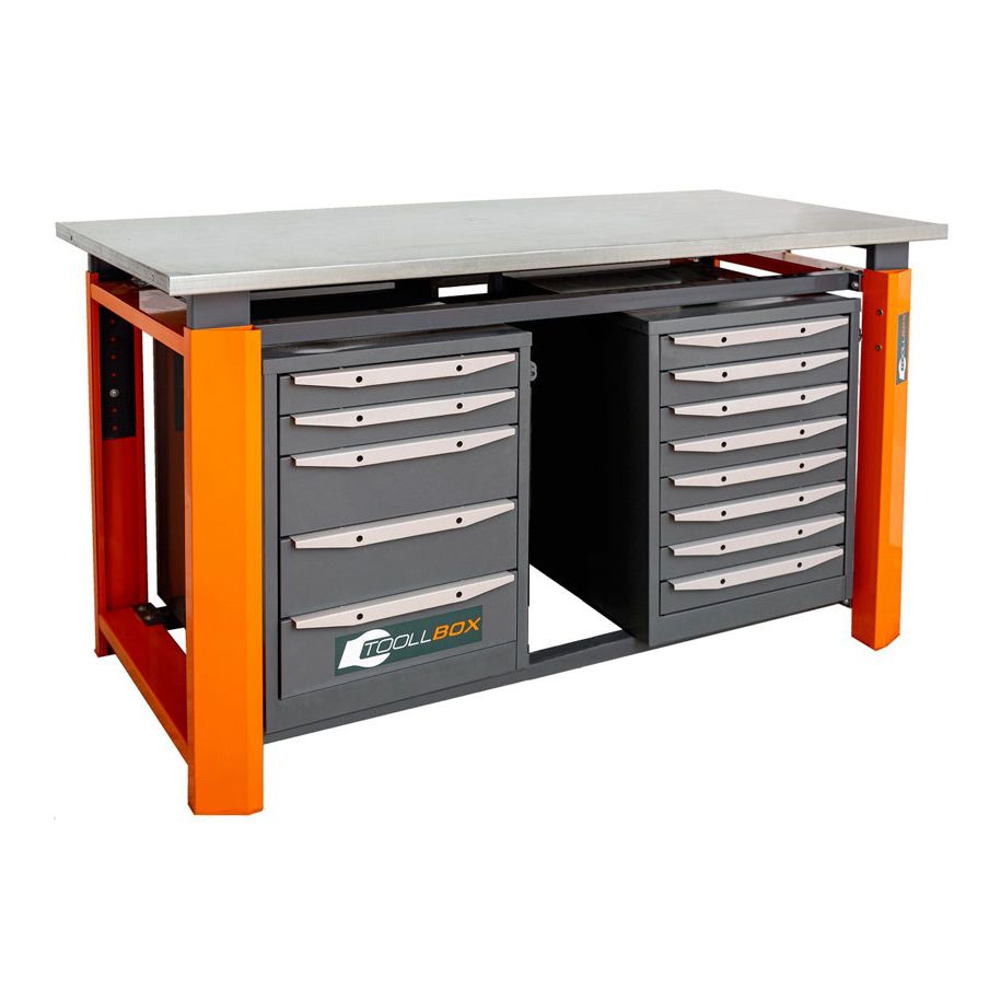 Отдельное преимущество модели — возможность регулировки высоты столешницы в диапазоне от 924 до 1044 мм. Это дает возможность подобрать комфортный уровень под рост сотрудника, особенности инструмента или формат выполняемых работ. Такой подход особенно ценен там, где рабочее место должно подстраиваться под реальные условия, а не наоборот.