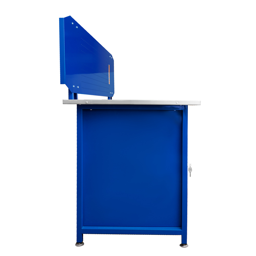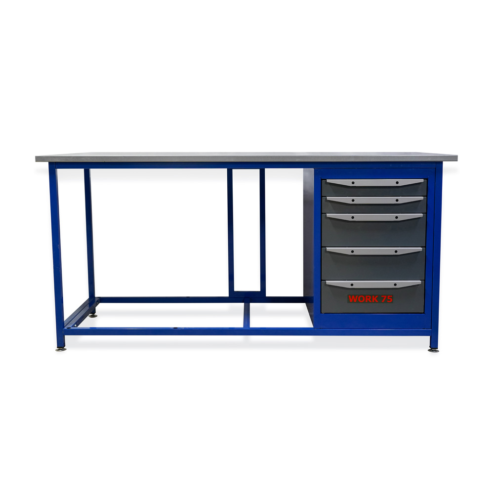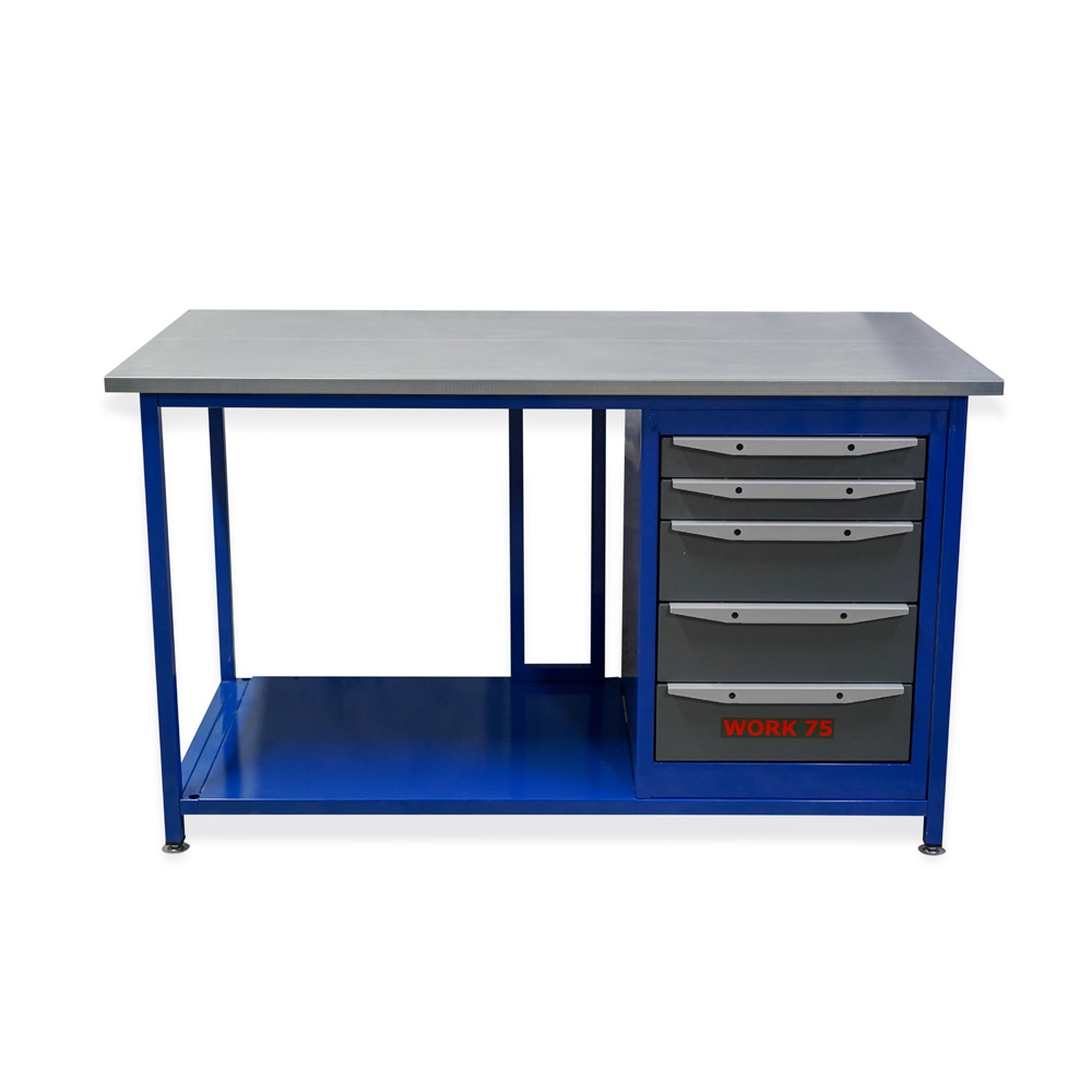 Рабочая зона — столешница глубиной 750 мм. Внутри — фанера 24 мм, сверху — оцинкованный стальной лист 1,2 мм. Такая поверхность практична в слесарных задачах: спокойно переносит ежедневные удары, контакт с металлом и инструментом, проще очищается от грязи и стружки. Максимальная распределенная нагрузка на столешницу — до 350 кг, поэтому WK1800(Т5) рассчитан не только на «подкрутить и починить», но и на серьезную сборку.